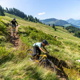 Am Berg können Familien in Kitzbühel ihr Bike-Erlebnis entspannt fortsetzen. Ob spielerisch auf den 360 Flow Trails oder genussvoll auf dem Weg zu einer Alm – dank sanfter Topografie, guter Erreichbarkeit und Bike-Transport mit den Bergbahnen bleibt das alpine Biken übersichtlich und gut planbar.