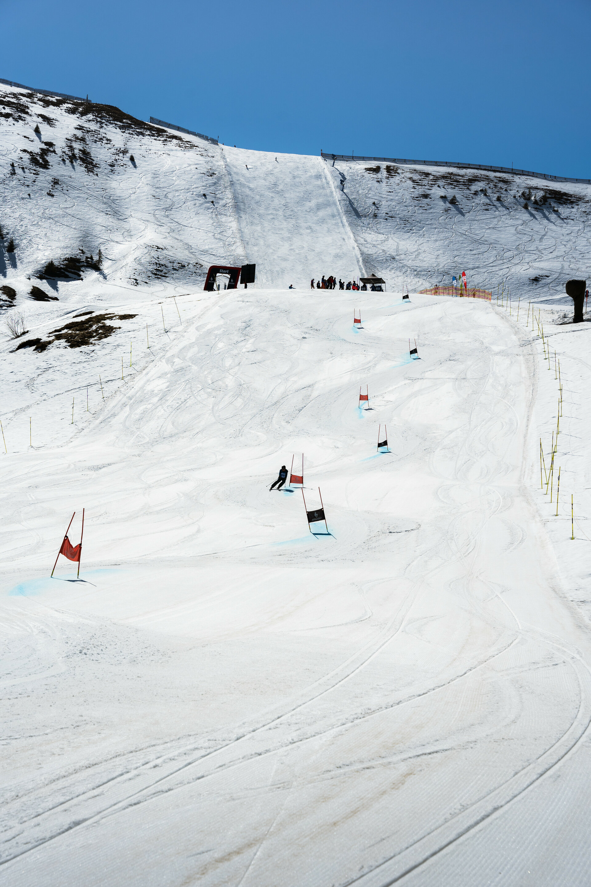 Von hier sind auch der Super-G-Start sowie der Ganslernhang, Austragungsort des Slalomrennens, gut sichtbar.