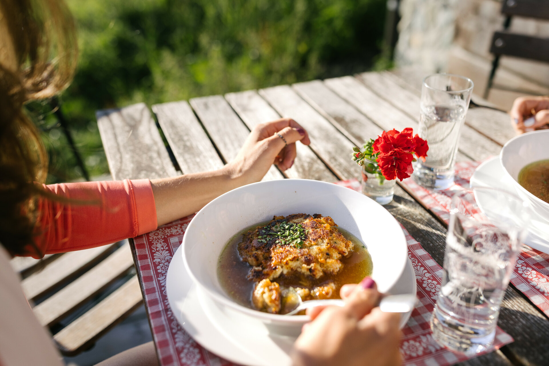 - Probieren Sie regionale Köstlichkeiten auf den Almen.