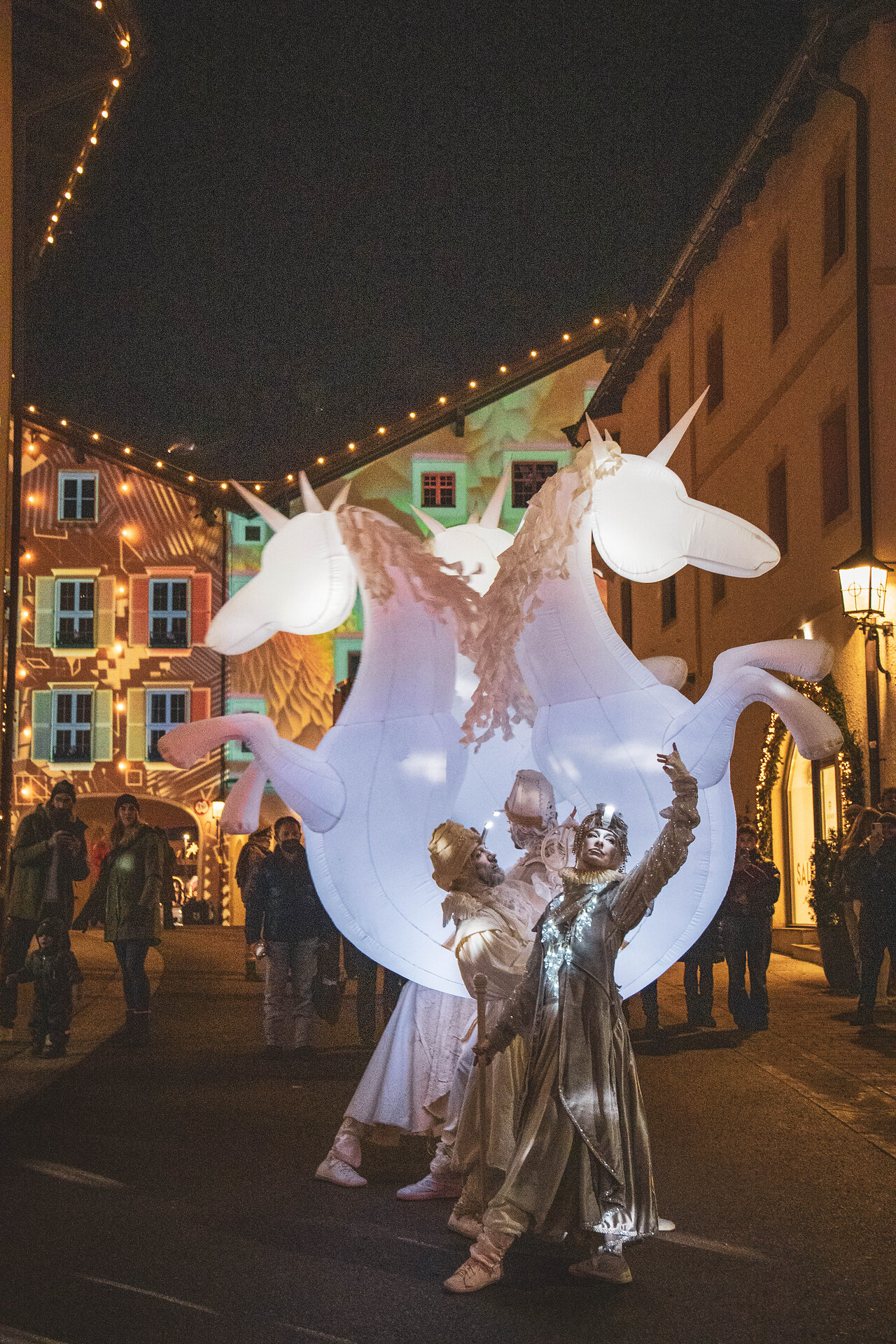 Das Spielvolk trifft den Moment der Faszination mit feinem Gespür und zieht die BesucherInnen mit einem außergewöhnlichen Programm in seinen Bann. Mit Einbruch der Dunkelheit entfalten die kunstvollen Kostüme ihre besondere Wirkung und verleihen dem Stadtbild eine magische Atmosphäre. Lassen Sie sich verzaubern und stimmen Sie sich gemeinsam mit uns auf den Jahreswechsel in Kitzbühel ein.